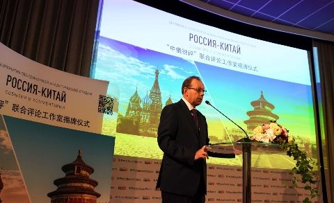 6月5日,由中央廣播電視總臺(tái)與俄羅斯政府機(jī)關(guān)報(bào)《俄羅斯報(bào)》共同打造的“中俄銳評(píng)”聯(lián)合評(píng)論工作室揭牌儀式在莫斯科舉行。中宣部副部長、中央廣播電視總臺(tái)臺(tái)長慎海雄,俄羅斯報(bào)社長涅戈伊察出席儀式,并共同為“中俄銳評(píng)”聯(lián)合評(píng)論工作室揭牌。