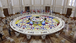 15日上午,杜尚別納烏魯茲宮,習(xí)主席出席亞洲相互協(xié)作與信任措施會(huì)議第五次峰會(huì)。圓桌會(huì)議開始后,亞信主席國元首拉赫蒙總統(tǒng)邀請(qǐng)習(xí)主席第一個(gè)發(fā)言。