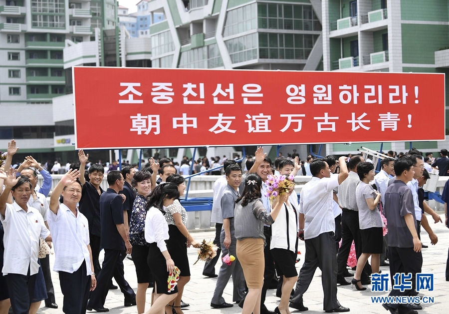 6月20日,中共中央總書記、國家主席習(xí)近平乘專機(jī)抵達(dá)平壤,開始對朝鮮民主主義人民共和國進(jìn)行國事訪問。這是在平壤街頭歡迎習(xí)近平來訪的朝鮮民眾。新華社記者 燕雁 攝