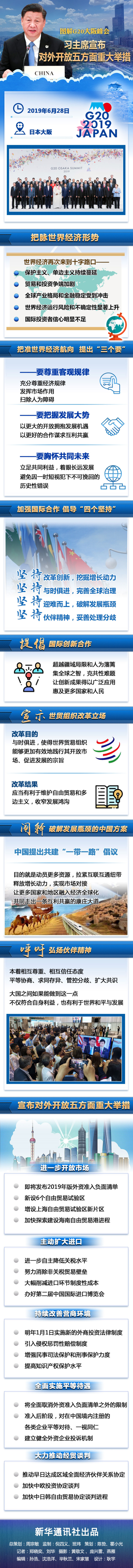 6月28日,習(xí)近平主席在日本大阪舉行的二十國(guó)集團(tuán)領(lǐng)導(dǎo)人峰會(huì)上發(fā)表題為《攜手共進(jìn),合力打造高質(zhì)量世界經(jīng)濟(jì)》的重要講話,宣布對(duì)外開放五方面重大舉措。
