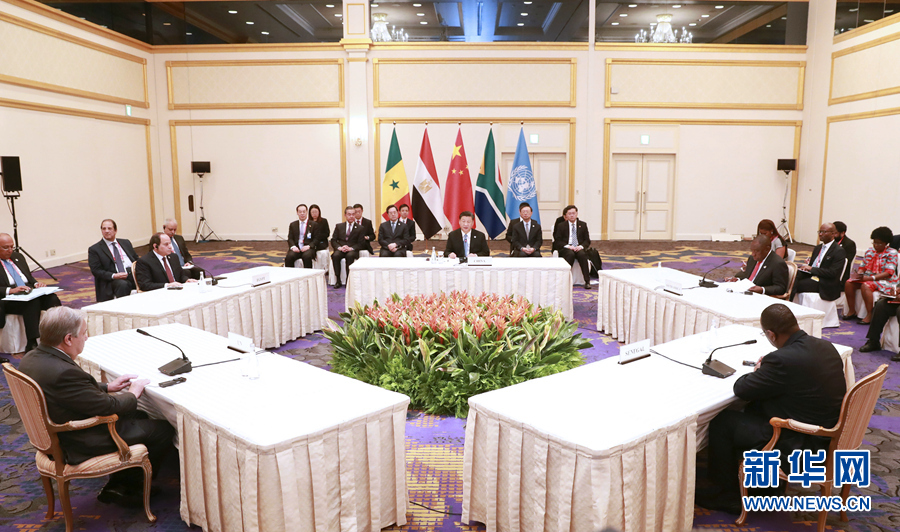 6月28日,國(guó)家主席習(xí)近平在大阪主持中非領(lǐng)導(dǎo)人會(huì)晤。新華社記者 龐興雷 攝