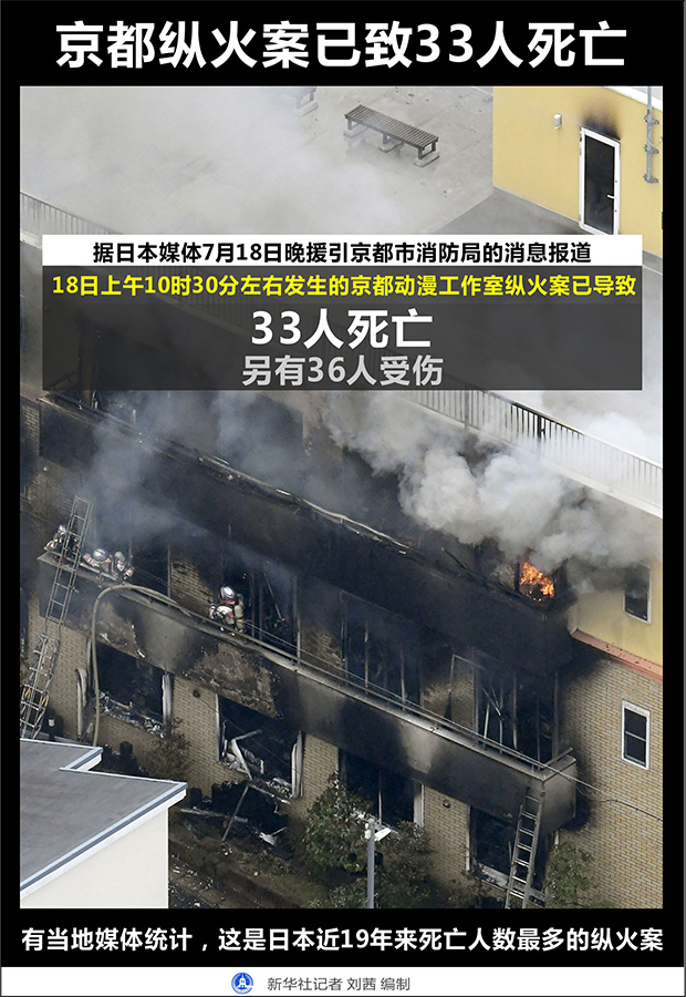 18日上午發(fā)生在日本京都動畫第一工作室的縱火案造成嚴重傷亡。據日本共同社報道,目前已確認33人死亡、36人受傷。有當地媒體統(tǒng)計,這是日本近19年來死亡人數最多的縱火案。