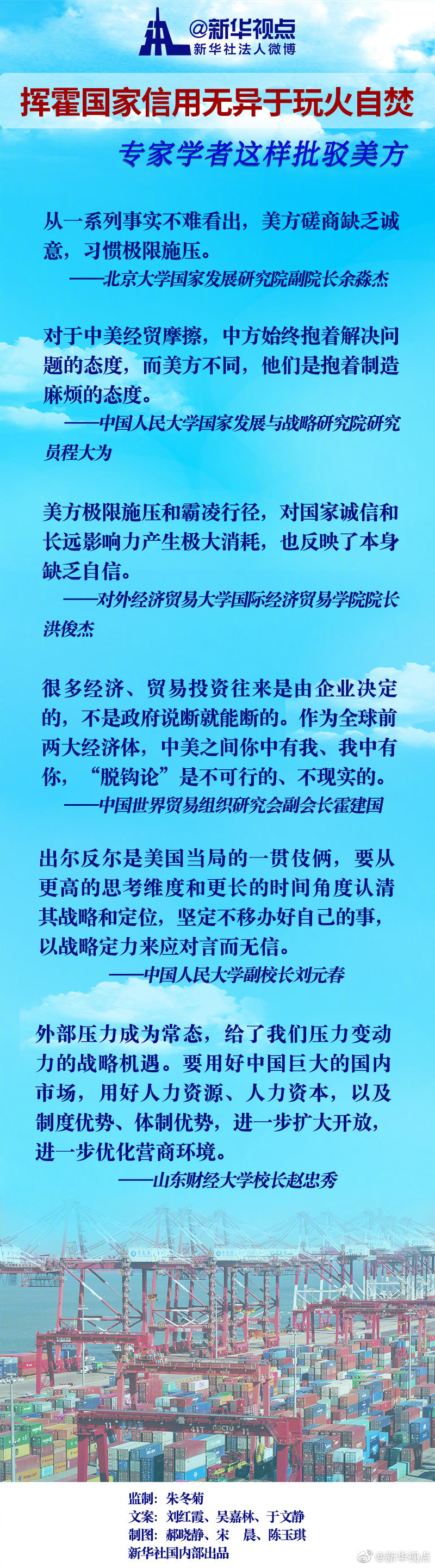 中國人民大學(xué)副校長劉元春認(rèn)為,出爾反爾是美國當(dāng)局的一貫伎倆,要從更高的思考維度和更長的時(shí)間角度認(rèn)清其戰(zhàn)略和定位,堅(jiān)定不移辦好自己的事,以戰(zhàn)略定力來應(yīng)對言而無信。