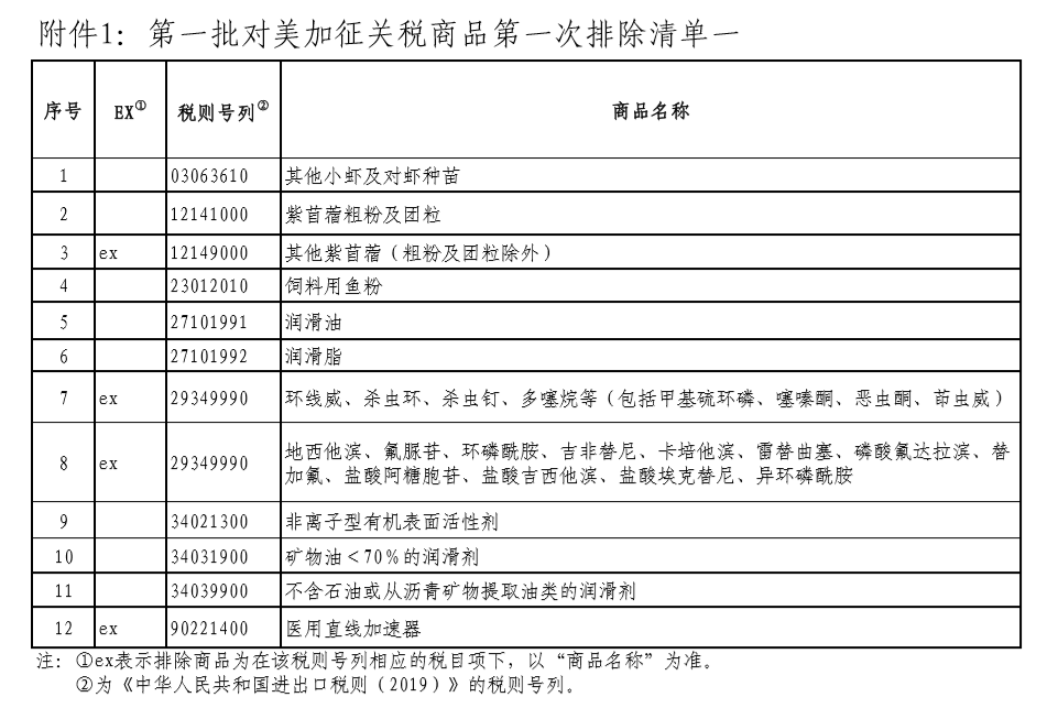 其中,清單一所列商品,自2019年9月17日至2020年9月16日,不再加征我為反制美301措施所加征的關稅。對已加征的關稅稅款予以退還,相關進口企業(yè)應自排除清單公布之日起6個月內(nèi)按規(guī)定向海關申請辦理。