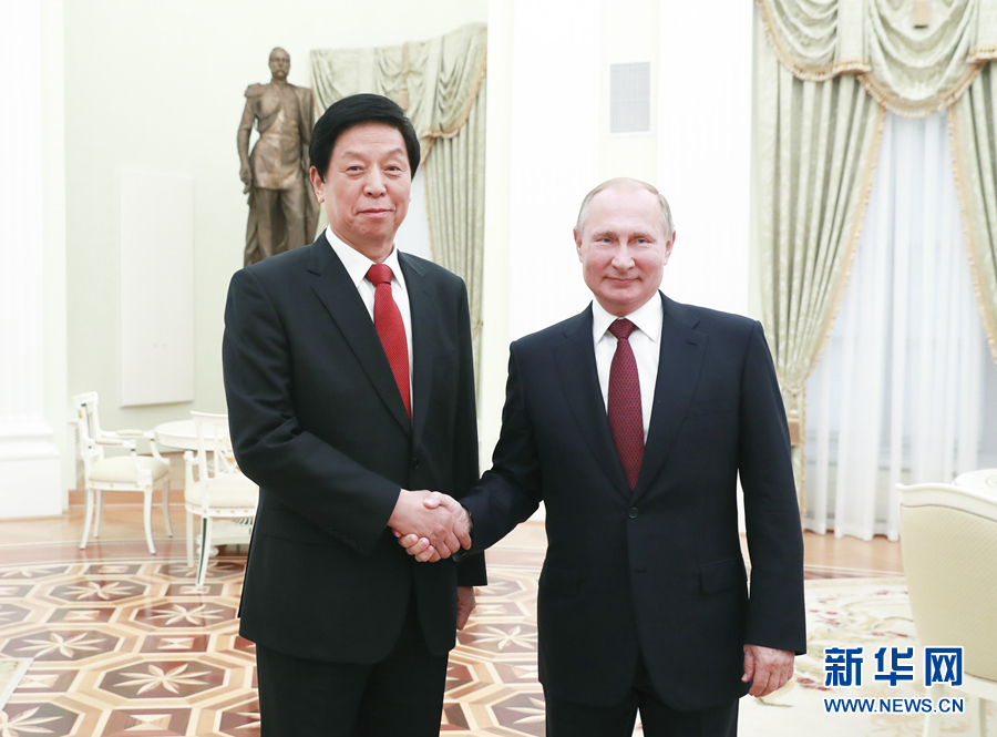 會(huì)見(jiàn)普京時(shí),栗戰(zhàn)書(shū)首先轉(zhuǎn)達(dá)了習(xí)近平主席的親切問(wèn)候。栗戰(zhàn)書(shū)說(shuō),在習(xí)近平主席和總統(tǒng)先生的戰(zhàn)略引領(lǐng)和推動(dòng)下,中俄關(guān)系達(dá)到前所未有的高度,邁入更高水平、更大發(fā)展的新時(shí)代。在當(dāng)前國(guó)際形勢(shì)下,中俄應(yīng)更加堅(jiān)定相互支持,共筑兩國(guó)戰(zhàn)略依托和安全屏障,推動(dòng)構(gòu)建新型國(guó)際關(guān)系和人類命運(yùn)共同體。要在兩國(guó)元首的戰(zhàn)略引領(lǐng)下,把政治互信和戰(zhàn)略協(xié)作推向新高度,把經(jīng)貿(mào)合作推向新水平,推動(dòng)中俄新時(shí)代全面戰(zhàn)略協(xié)作伙伴關(guān)系不斷向前發(fā)展。普京請(qǐng)栗戰(zhàn)書(shū)轉(zhuǎn)達(dá)對(duì)習(xí)近平主席的良好祝愿。他說(shuō),俄中關(guān)系是當(dāng)今世界大國(guó)關(guān)系的典范。俄中新時(shí)代全面戰(zhàn)略協(xié)作伙伴關(guān)系建立在遵守國(guó)際法基礎(chǔ)上,符合兩國(guó)及兩國(guó)人民利益。當(dāng)前兩國(guó)各領(lǐng)域合作都向著既定目標(biāo)穩(wěn)步推進(jìn)。要在現(xiàn)有基礎(chǔ)上,深化全面合作,把兩國(guó)關(guān)系發(fā)展得更好。