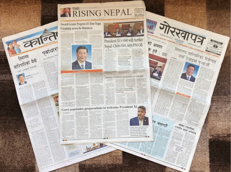 10月11日,尼泊爾3份報紙頭版刊登習(xí)近平主席的署名文章,題為《將跨越喜馬拉雅的友誼推向新高度》。新華社記者王婧嬙攝