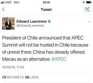(智利總統(tǒng)宣布因?yàn)轵}亂不在智利舉辦APEC峰會(huì),中國(guó)提議澳門作為備選)