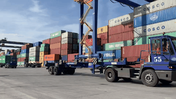 從進入比雷埃夫斯集裝箱碼頭大門起,工作人員就提醒記者:“碼頭非常繁忙!務(wù)必注意安全?!?/p>