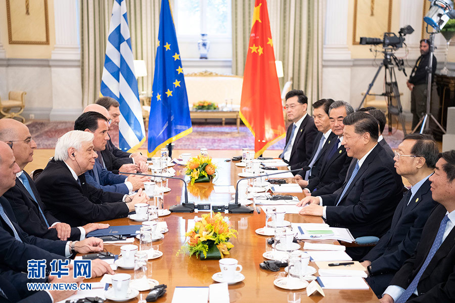 當?shù)貢r間11月11日,國家主席習近平在雅典同希臘總統(tǒng)帕夫洛普洛斯會談。 新華社記者 李學仁 攝