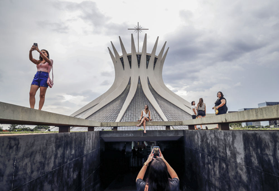 臨近“機(jī)尾”是高達(dá)224米的巴西利亞電視塔。登塔望遠(yuǎn),巴西利亞主城區(qū)井然有序的對(duì)稱格局盡收眼底,一望無垠的藍(lán)天和變幻莫測(cè)的白云也是這里一道靚麗的風(fēng)景線。