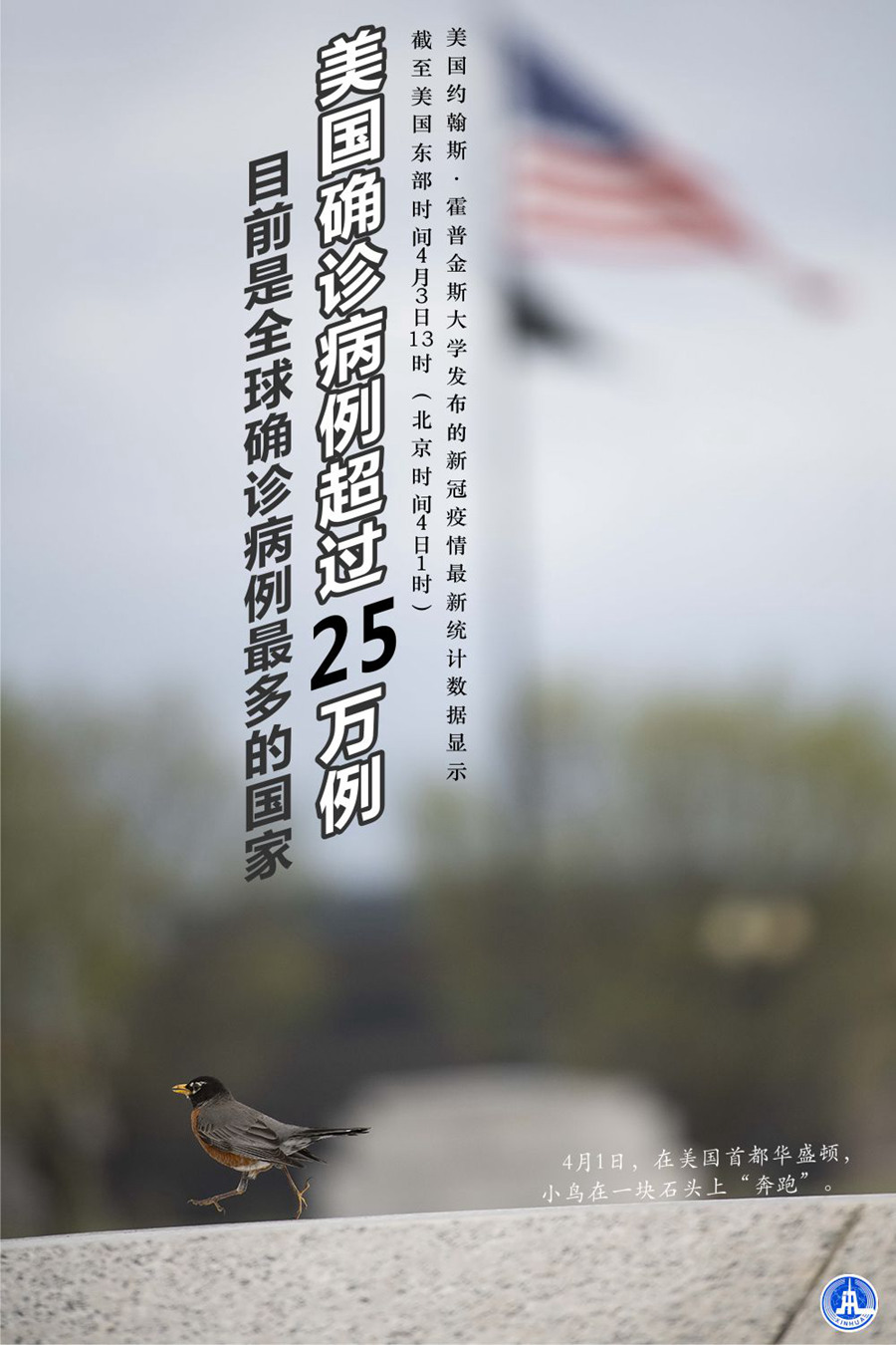 新華社紐約4月3日電 美國約翰斯·霍普金斯大學(xué)3日發(fā)布的新冠疫情最新統(tǒng)計(jì)數(shù)據(jù)顯示,美國確診病例超過25萬例。美國目前是全球確診病例最多的國家。