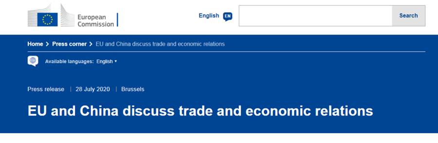 7月29日消息,7月28日,中共中央政治局委員、國務(wù)院副總理劉鶴與歐盟委員會(huì)執(zhí)行副主席東布羅夫斯基斯以視頻會(huì)議形式共同主持第八次中歐經(jīng)貿(mào)高層對話。雙方圍繞“開啟后疫情時(shí)代中歐合作新局面,引領(lǐng)全球經(jīng)濟(jì)穩(wěn)健復(fù)蘇增長”主題,進(jìn)行了深入、坦誠、務(wù)實(shí)、高效的討論,就共同抗擊新冠肺炎疫情、全球經(jīng)濟(jì)治理、產(chǎn)業(yè)鏈供應(yīng)鏈安全、中歐投資協(xié)定談判、世貿(mào)組織改革、擴(kuò)大市場開放、數(shù)字經(jīng)濟(jì)、互聯(lián)互通、金融和稅務(wù)領(lǐng)域合作等達(dá)成一系列豐碩成果和共識(shí)。