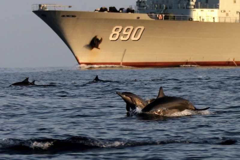 當(dāng)?shù)貢r間9月5日,數(shù)百頭海豚出現(xiàn)在編隊(duì)巢湖艦艦艏海面,并跟著軍艦跳躍追逐,從下午四點(diǎn)多鐘開始,持續(xù)了兩個多小時才離去,為在海上連續(xù)護(hù)航130多天沒有靠港休整的海軍第35批護(hù)航官兵帶來不少輕松和快樂。