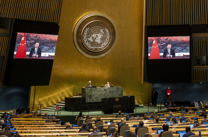 9月22日,國家主席習(xí)近平在第七十五屆聯(lián)合國大會一般性辯論上發(fā)表重要講話。新華社記者 鞠鵬 攝