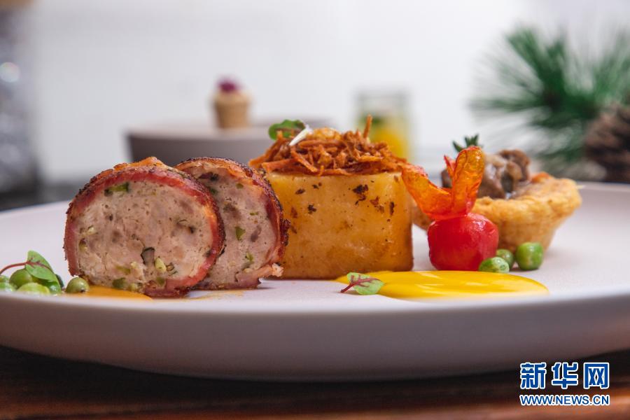 11月23日,泰國(guó)曼谷葡萄牙人后裔社區(qū)一家小私房菜館出品的菜品被擺放在天堂酒店的餐桌上。新華社發(fā)(天堂酒店供圖)