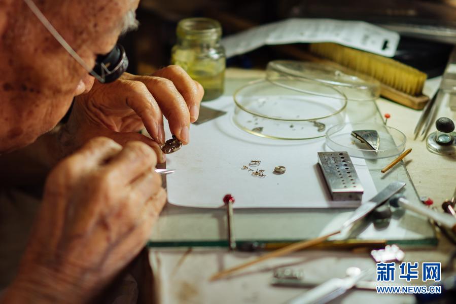 12月5日,在馬來(lái)西亞雪蘭莪州巴生的郁昌表行,韋華在維修手表。新華社記者 朱煒 攝