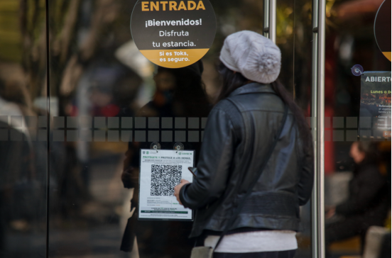 記者在墨西哥城街頭看到,一些銀行、電影院、博物館、購物中心等場所入口顯眼處貼有二維碼,民眾掃碼數(shù)秒后,便會生成地點(diǎn)和時間等基本數(shù)據(jù)。