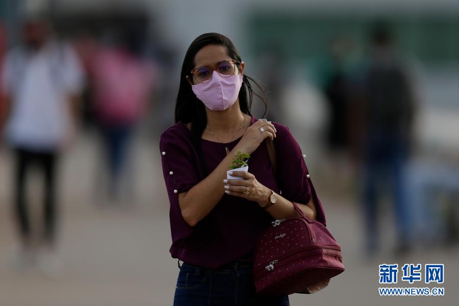 12月16日,在巴西首都巴西利亞,一名女子戴著口罩出行。新華社發(fā)(盧西奧·塔沃拉 攝)