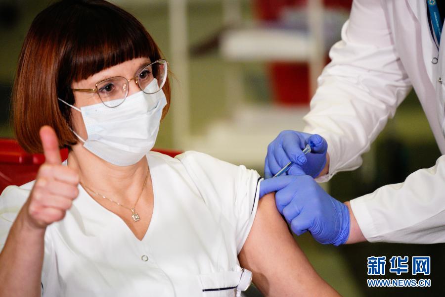 12月27日,在波蘭首都華沙一家醫(yī)院,一名醫(yī)生接種新冠疫苗。新華社發(fā)(亞普·阿林?jǐn)z)