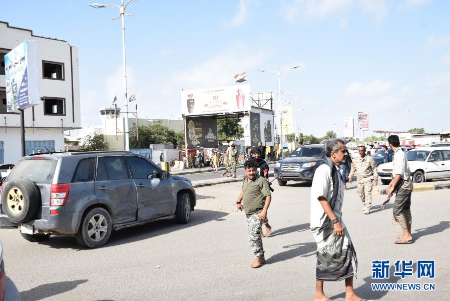 12月30日,在也門亞丁,政府軍士兵在爆炸后封鎖了亞丁國際機場的入口。新華社發(fā)(穆拉德·阿卜杜攝)
