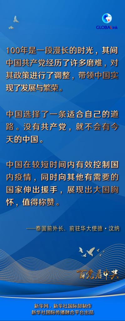 新華社曼谷5月29日電 “100年是一段漫長的時光,其間中國共產(chǎn)黨經(jīng)歷了許多磨難,對其政策進(jìn)行了調(diào)整,帶領(lǐng)中國實(shí)現(xiàn)了發(fā)展與繁榮?!碧﹪巴忾L、前駐華大使德·汶納日前在曼谷接受新華社專訪時說。
