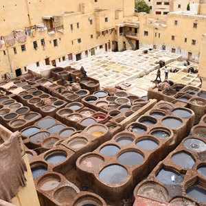 皮革業(yè)是摩洛哥的重要產(chǎn)業(yè)之一,非斯古城中的一些皮革染坊至今仍延用傳統(tǒng)工藝為皮革染色。