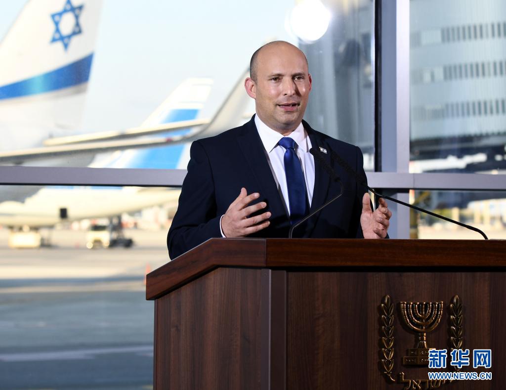 6月22日,以色列總理貝內(nèi)特在本古里安國(guó)際機(jī)場(chǎng)發(fā)表電視聲明。