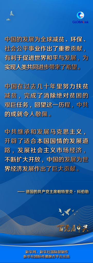 科伯勒認(rèn)為,中共繼承和發(fā)展馬克思主義,開辟了適合本國(guó)國(guó)情的發(fā)展道路,發(fā)展社會(huì)主義市場(chǎng)經(jīng)濟(jì),不斷擴(kuò)大開放,中國(guó)的發(fā)展為世界經(jīng)濟(jì)發(fā)展作出了巨大貢獻(xiàn)。
