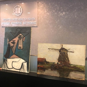 希臘警方28日在距離首都雅典大約50公里處的一座倉(cāng)庫(kù)中發(fā)現(xiàn)國(guó)立美術(shù)館2012年失竊的一幅畢加索作品《女人頭像》。在同一行動(dòng)中,警方還發(fā)現(xiàn)國(guó)立美術(shù)館另一失竊作品,即荷蘭畫家皮特·蒙德里安1905年創(chuàng)作的《磨坊》。蒙德里安畫作發(fā)現(xiàn)時(shí)已有損壞。警方在行動(dòng)中逮捕了一名現(xiàn)年49歲的男子。新華社發(fā)
